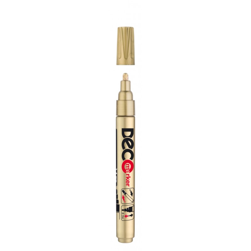 Плотная текстура состава маркера полностью закрашивает ранее нанесенные надписи. Используется для письма на металле, стекле, камне и пластике. Цвета - золотой, серебро, белый. Толщина письма - 3,9мм.